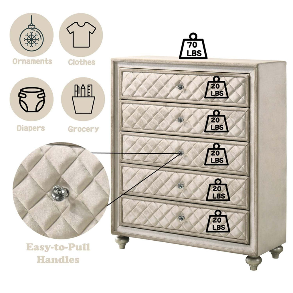 Lucienne 5 Storage Drawers Chest, Beige Velvet