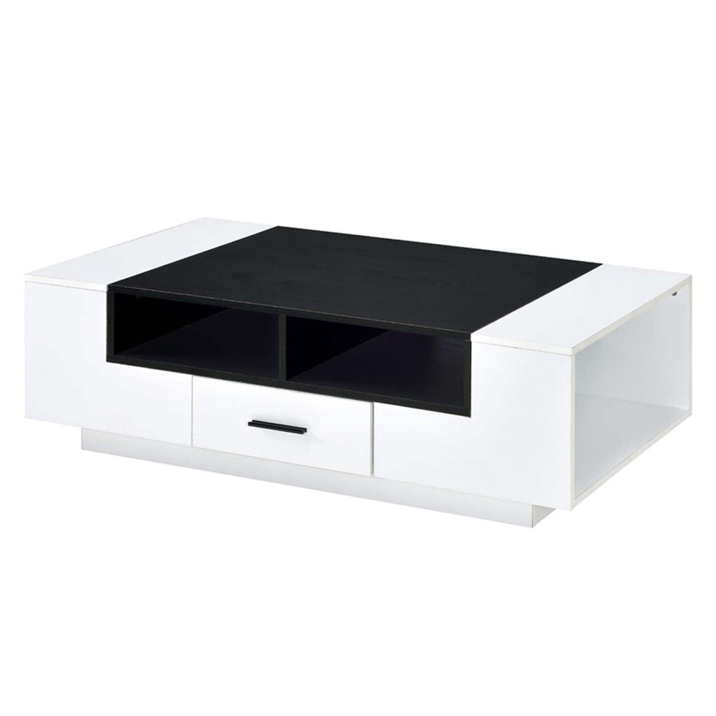 Showcasing a clean-lined elegant design, this Armour coffee table will be a perfect station in front of a loveseat or a cozy seating group. Expertly crafted with selected veneers, and engineered woods, features a white finish that brimmed with contemporary appeal. Along with the open compartments on two sides and shelves, it also includes drawer for storage and organizational needs.