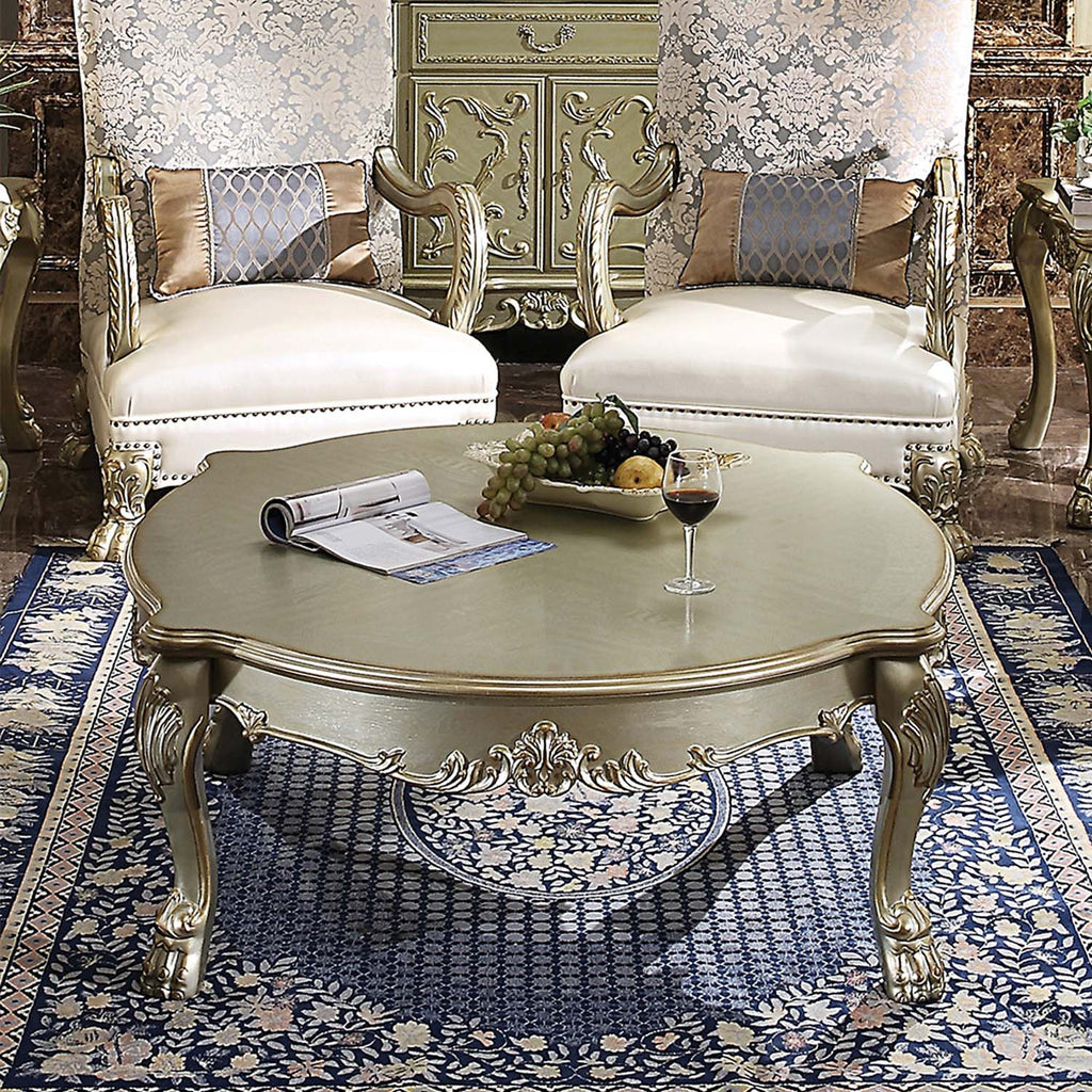 Inspire your home and create an upscale atmosphere with the Dresden occasional table. This table adds classic style to any sitting area featuring a traditional handcrafted design. This luxurious collection features a oversized decorative motives, and antique brushed finish collection that is guaranteed to be the highlight of any home.
