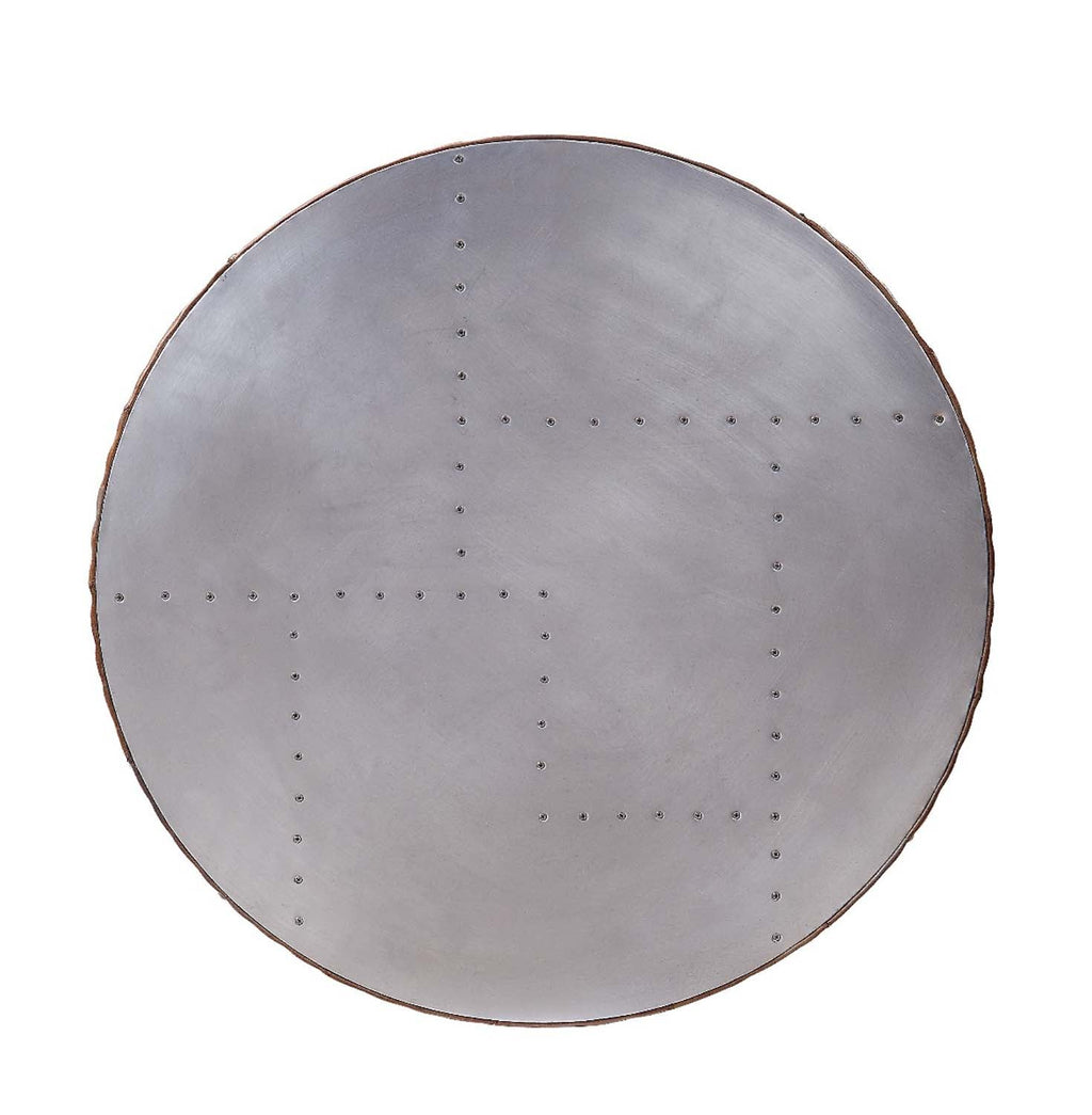 Tamas Drum End Table , Aluminum & Cocoa Top Grain Leather