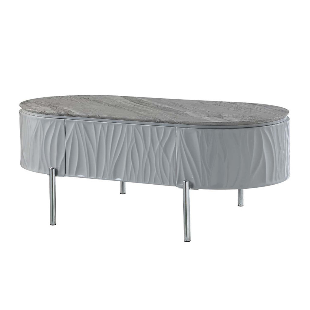 Yukino Oval Coffee Table, Gray High Gloss & Chrome Finish