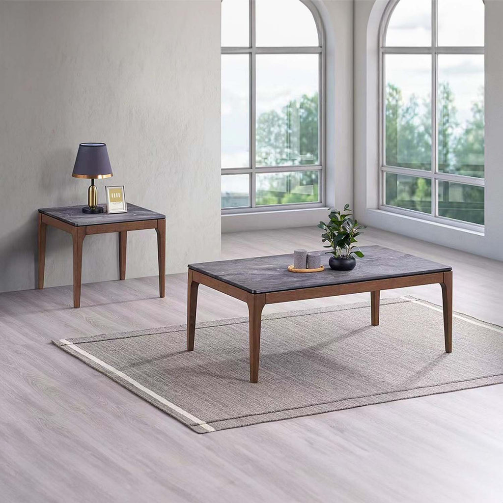 Bevis Rectangular Coffee Table , Engineered Stone Top & Walnut Finish