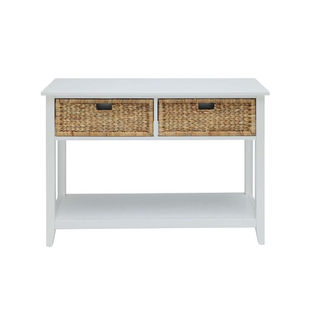 A stylish look for any room in your home, the Flavius console is a fantastic storage solution. The console has a nice, neutral finish and comes with two basket-like drawers. The consoles two drawers offer the right amount of space for keys, books, and pet leashes. While the bottom shelf helps provide additional storage and decor solutions.