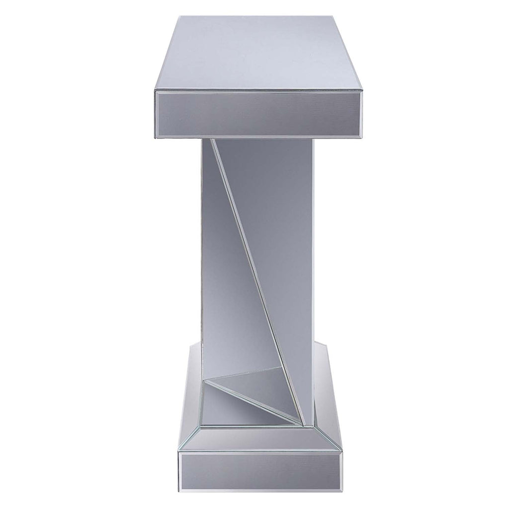 The Noralie Console Table will add a contemporary touch to any room in your home. With its clean lines, this brilliant rectangular occasional table showcases a distinctive style for an intriguing look. The table features a fully mirrored beveled table top and mirrored table base in a unique triangular design with a spectacular faux diamond inlay. This unique accent piece complements a wide range of Decor and its modern design is a useful addition to any living area.