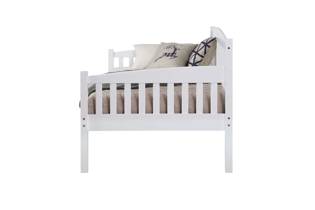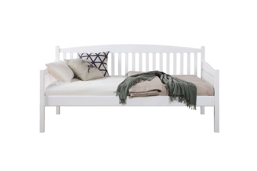 The Caryn daybed transitional collection is a great option for your guest room. Its multifunctional use offers comfortable lounging and cozy sleeping areas. Features slightly curved back, and side arms supported by slatted panels with square poster legs. Crafted from selected woods and veneers for strengths and durability, and amazing antique oak finish will match any interiors.