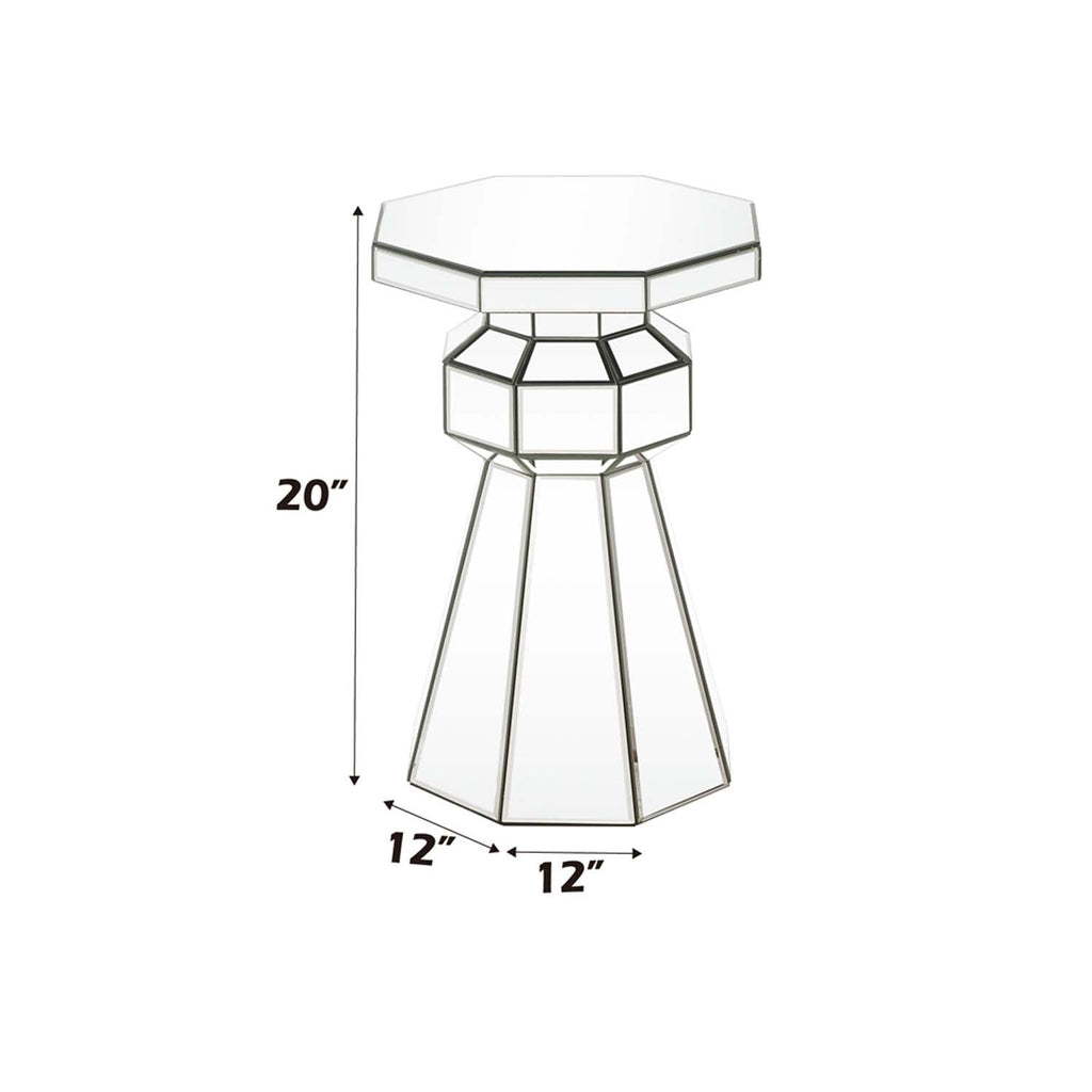 Balance your room decor with this glitzy modern work. Unique design brings modern glamour to your room areas. This beautiful mirrored pedestal features a attractive polygon base, adding depth and dimension to your room design. It's multi-layered look can work wonders to small spaces. Use it as a display table or plant stand to create a room's focal point.