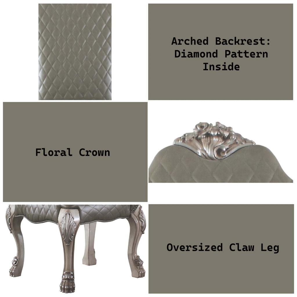 - Arched Backrest: Diamond Pattern Inside, Floral Crown & Nailhead Trim