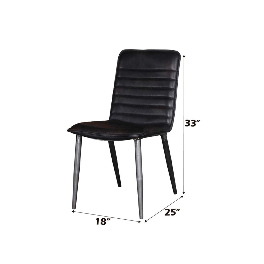 The Hosmer side chair bring a clean and modern style to your dining room. This dining chair features a black top grain leather padded seat with metal tapered legs in an antique black finish, creating a retro vibe. Add this chair to any table for extra comfort and style.
