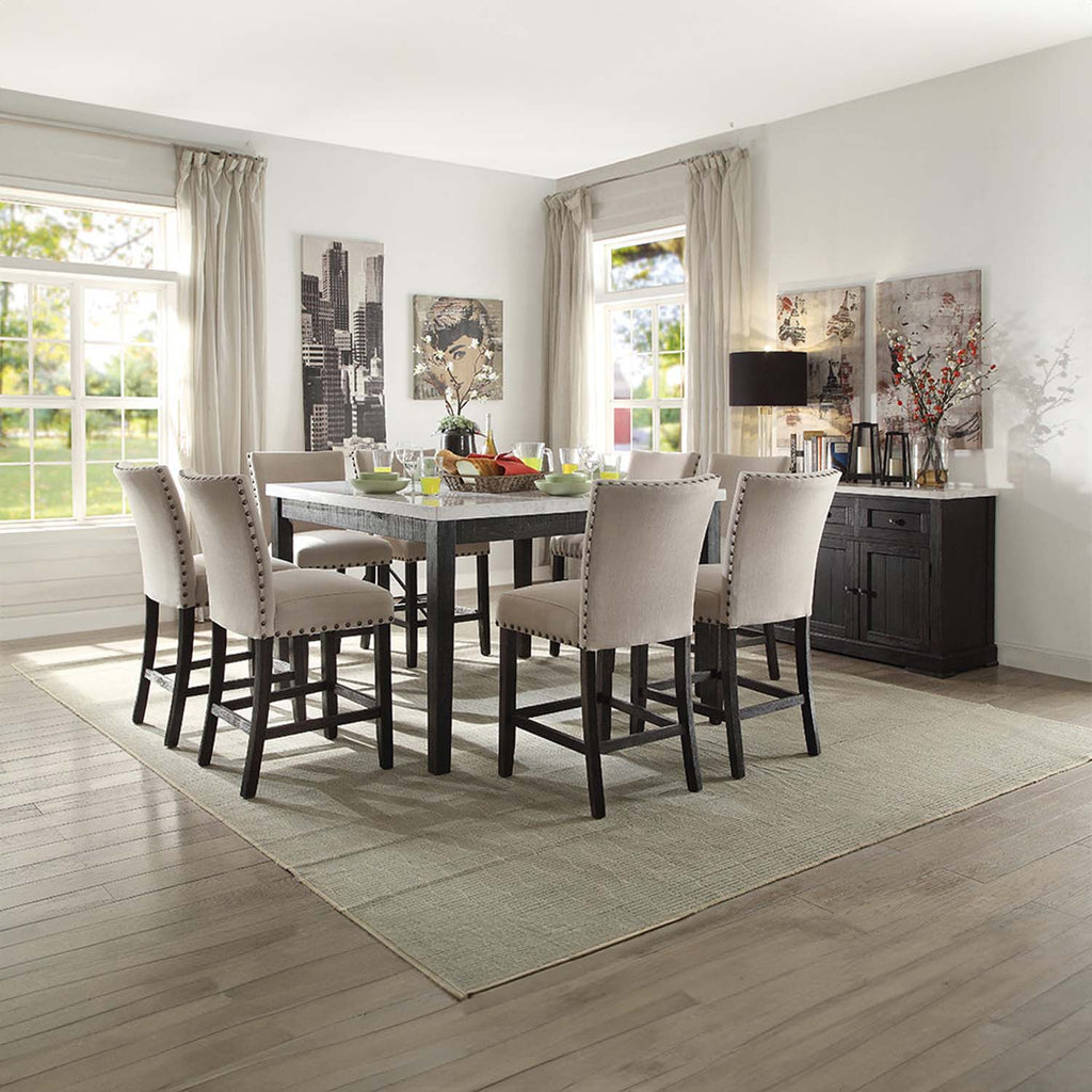 Nolan Counter Height Chair 2Pc, Beige Linen & Salvage Dark Oak Finish