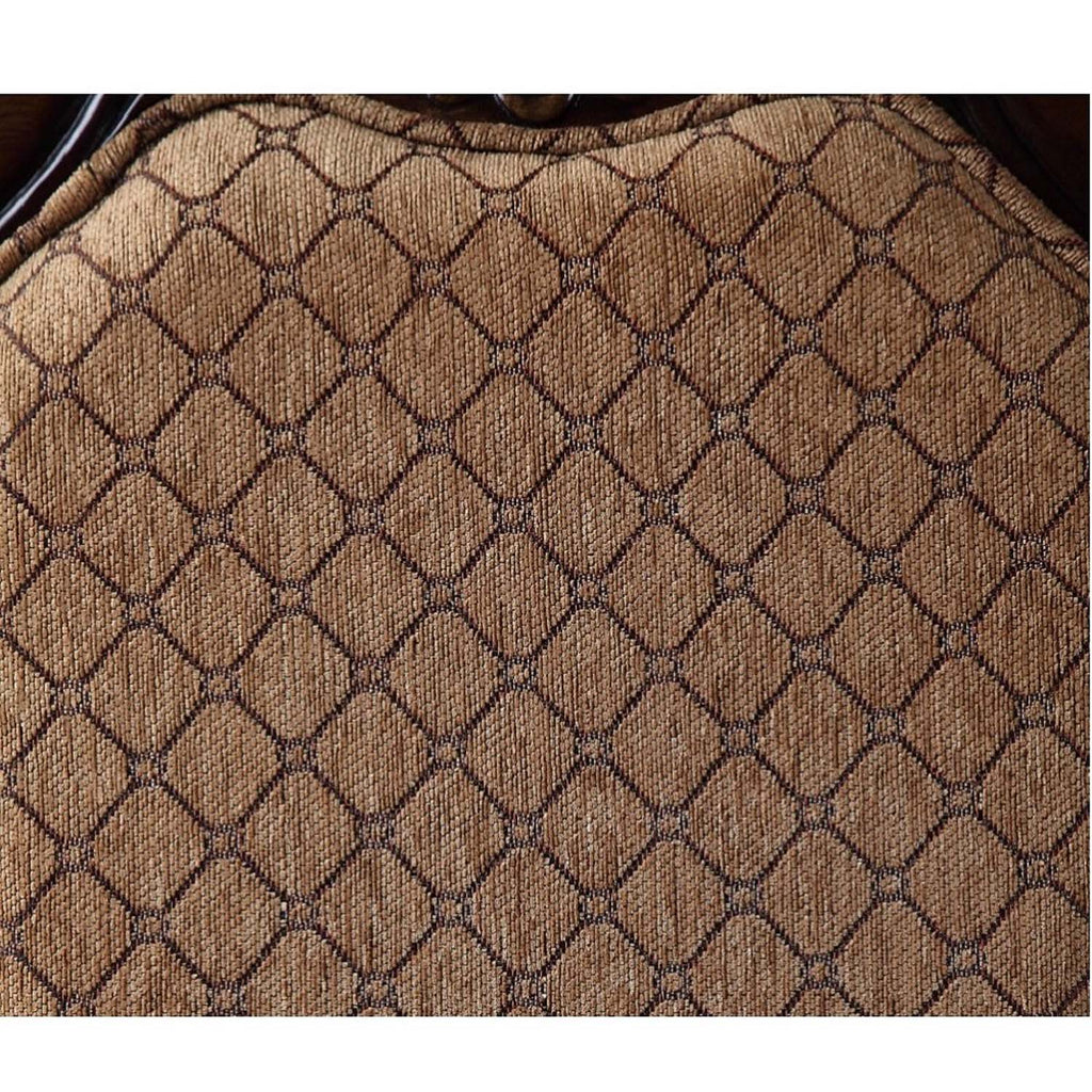 - Arched Backrest: Fabric, Wood Trim with Raised Motifs
