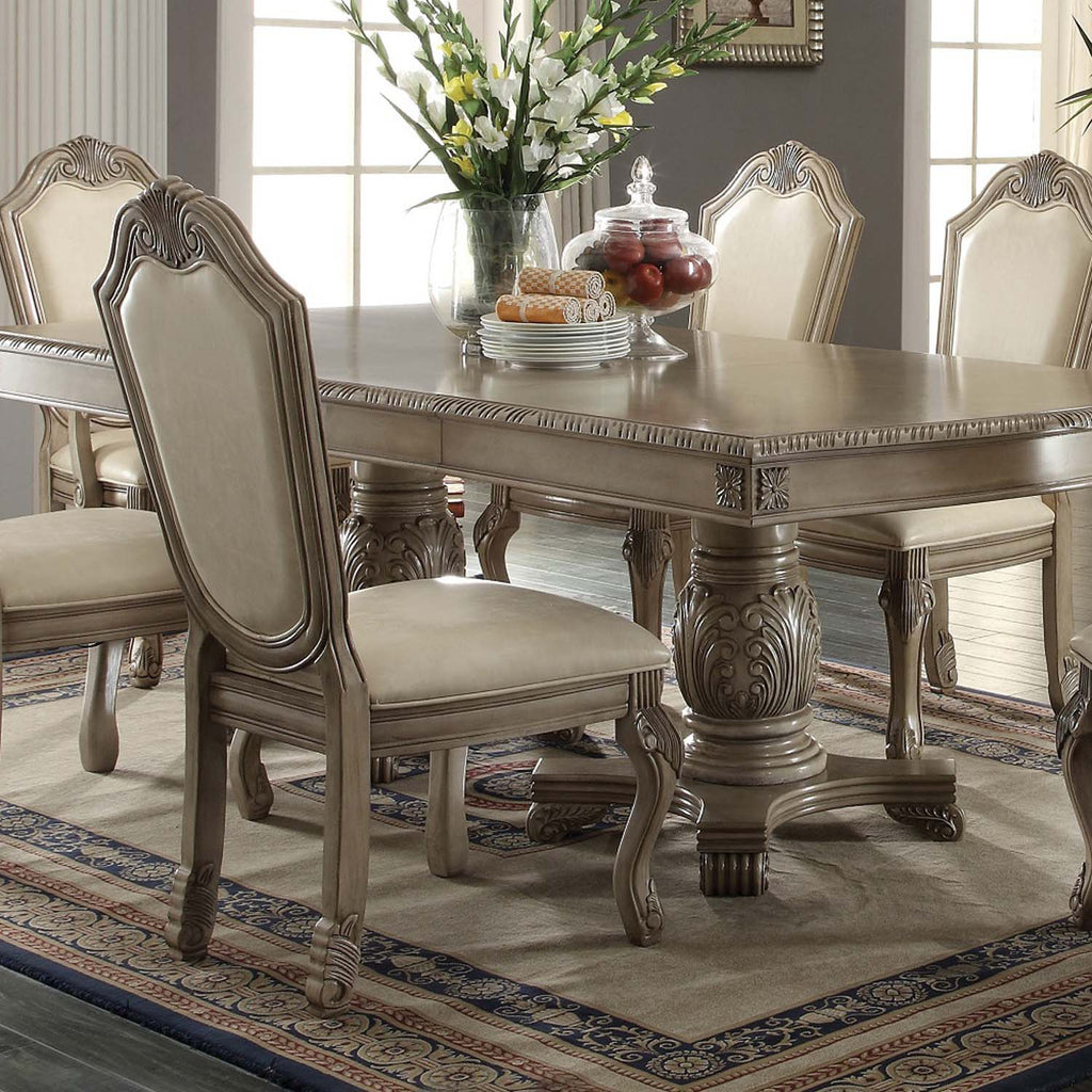 Chateau de Ville Side Chair 2Pc, Faux Leather & Antique White Finish
