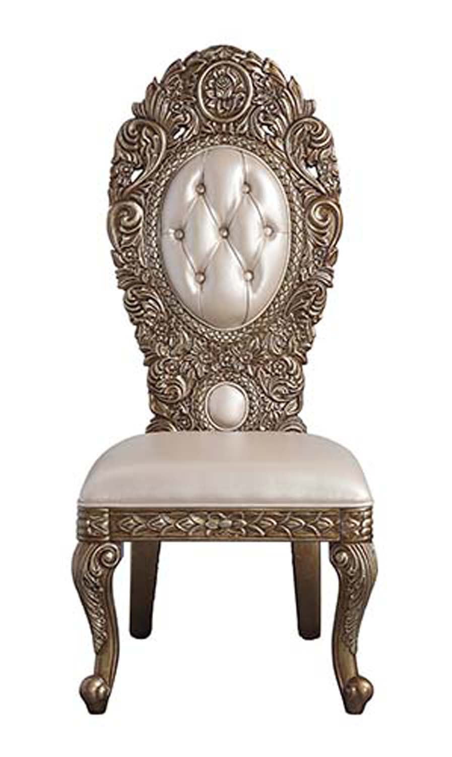 Constantine Side Chair 2Pc, Faux Leather , Brown & Gold Finish
