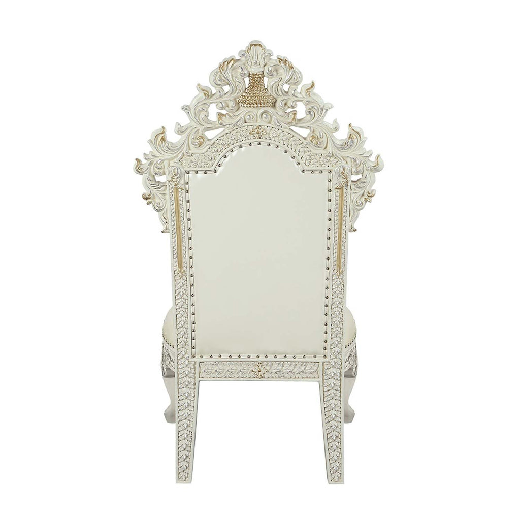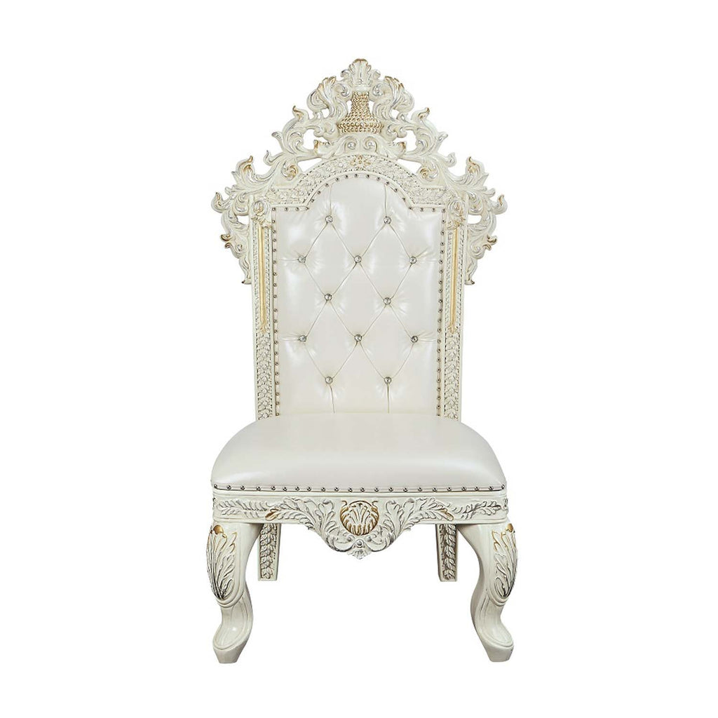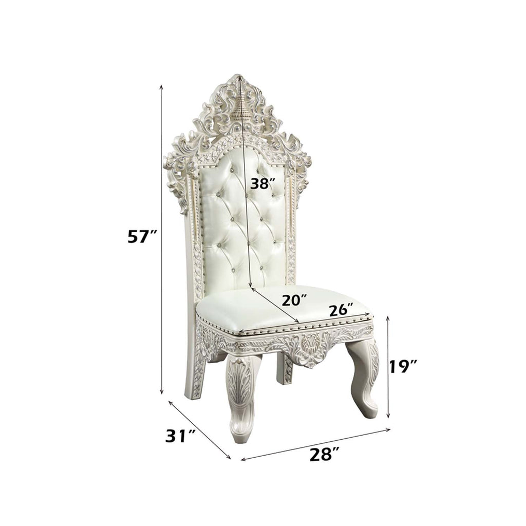 Color: Pearl White Synthetic Leather & Antique White Finish