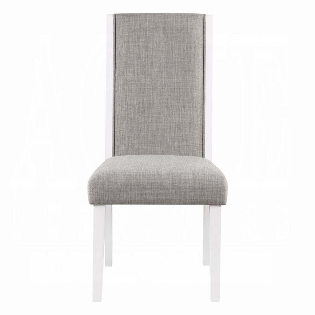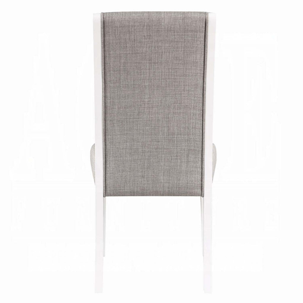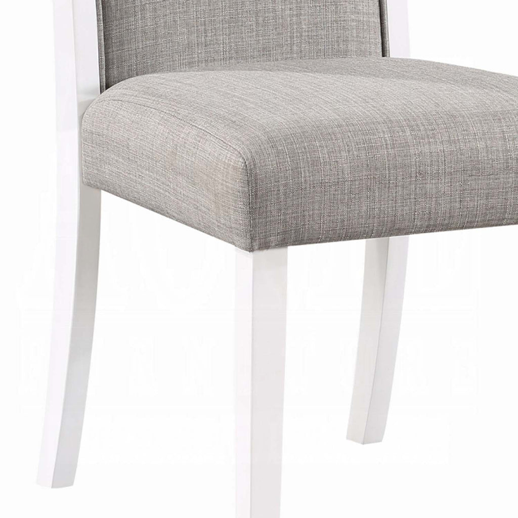 These Hollyn luxe dining side chairs are designed with a classic silhouette. Founded on a wooden frame, these chairs offer optimum comfort, so everyone at your dinner party has a relaxing time while feasting. It features a fully upholstered seat and backrest in classic gray linen, balanced on wooden legs in a white finish giving these chairs an elevated farmhouse feel. Sold as a set of two.