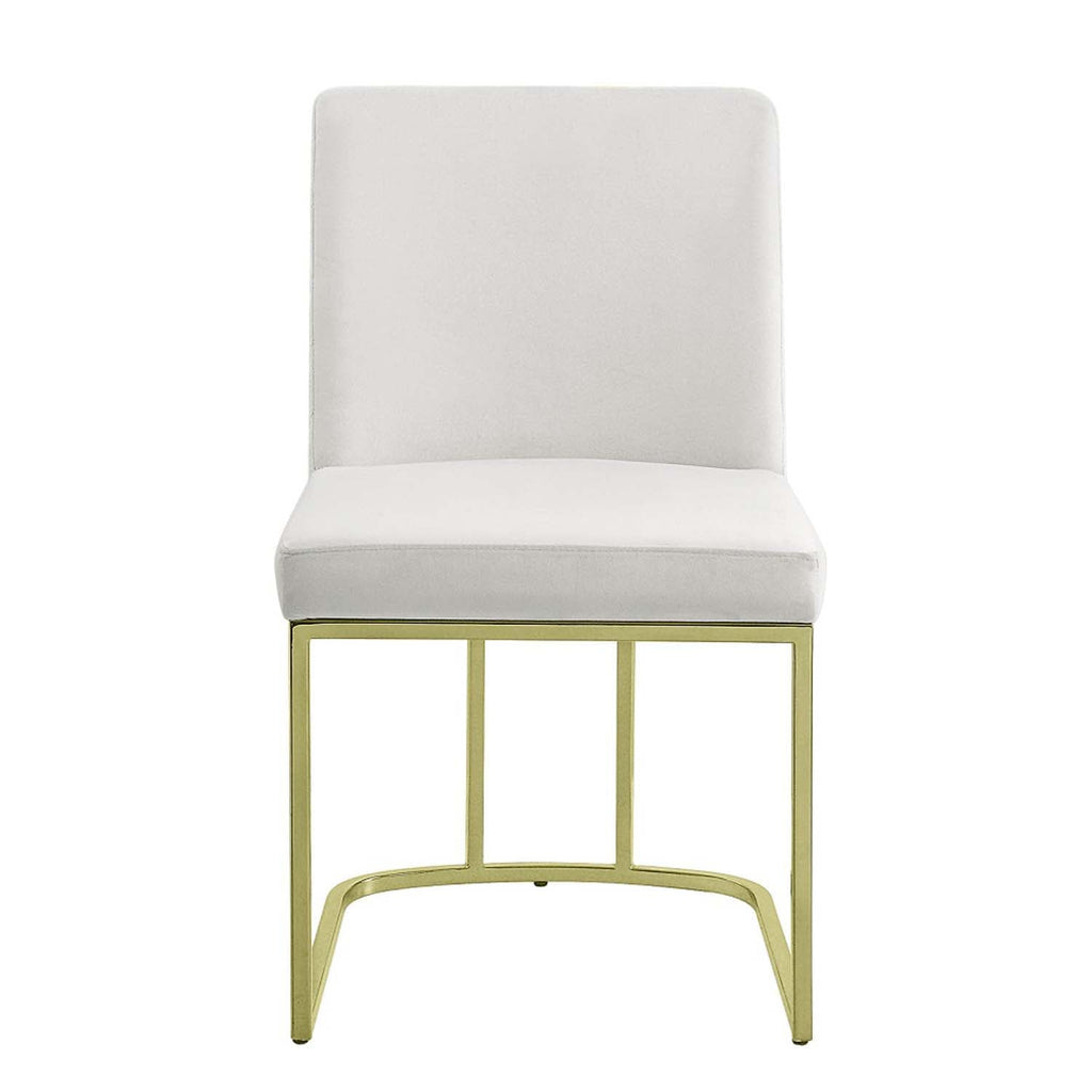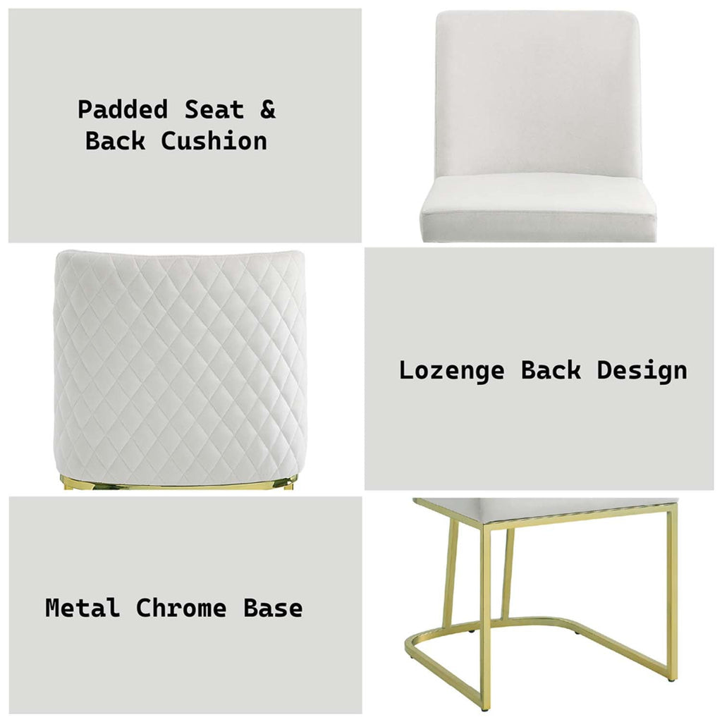 The Zazie chairs are all about style and comfort. With a contemporary design that also offers a touch of glam, the white velvet upholstery and gold base make for eye-catching pieces. The chairs feature 4" seat cushions that allow you and your guests to dine in comfort for hours of dining and after-dinner conversations. Sold as a set of 2.