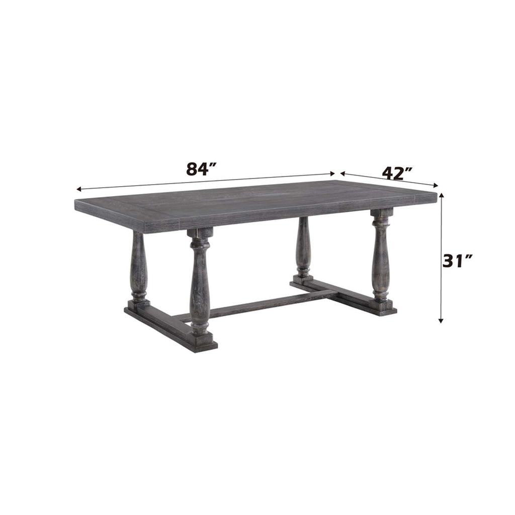 Upgrade your dining space with the sophisticated Bernard dining set. This transitional collection combines the look of natural weathering with the understated styling of rustic design. Gray oak undertones play to the weathered look of this rectangular dining table that features a trestle base with sleek turned posts. Add this table and upholstery chairs to any dining area for a trend forward style.