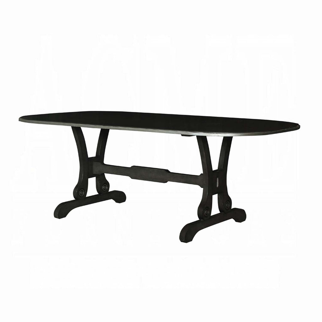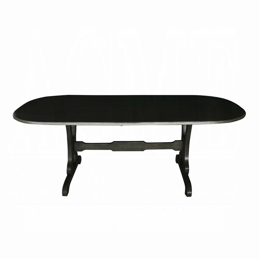 Inspired by European Romanticism, this House Beatrice dining set evokes an iconic refinement. Wooden dining table matches with chairs upholstered with a beautiful faux leather; this set shows where sublime simplicity meets supreme comfort. Featuring two-toned finish, streamlined and unique accents, each piece of this dining set is in our richly textured.