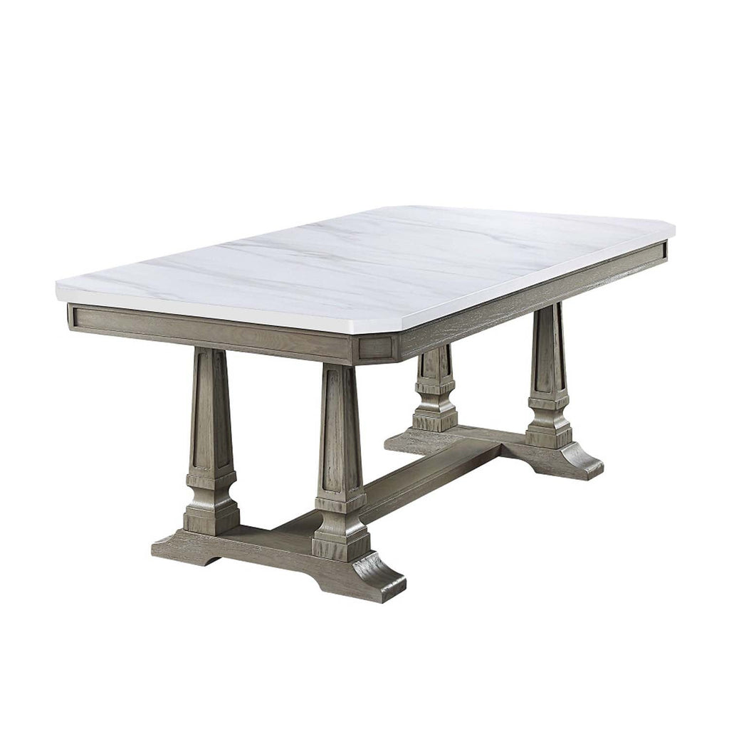 Zumala Dining Table, Marble Top & Weathered Oak Finish