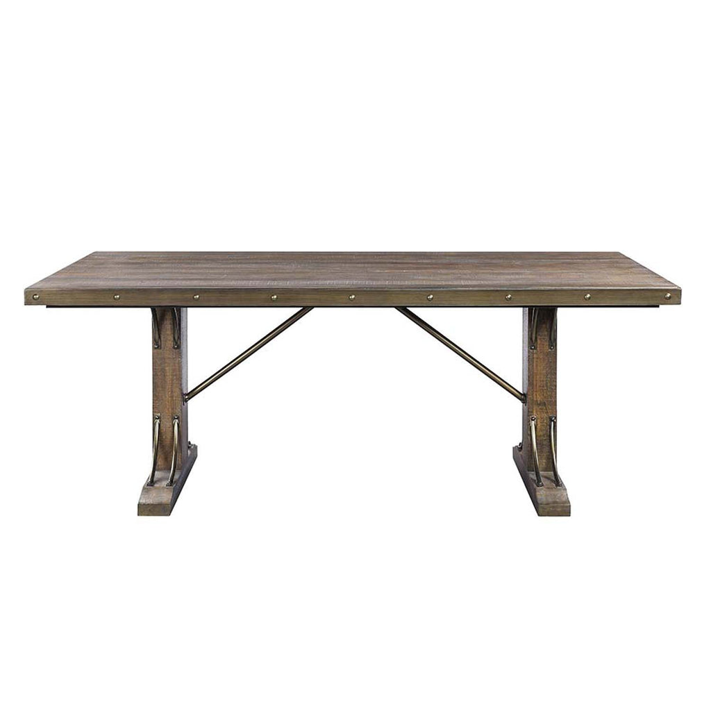 The dining table is where the greatest memories are formed. Gather friends and family around the Raphaela dining table in weathered cherry. Its ample tabletop will seat your guests comfortably, which makes it great for hosting dinner parties. The double pedestal base and support bars assure that the table is sturdy. The metal trim on the tabletop adds modern farmhouse charm to the piece.