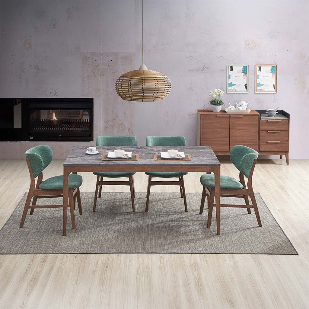 Bevis Dining Table, Engineered Stone Top & Walnut Finish