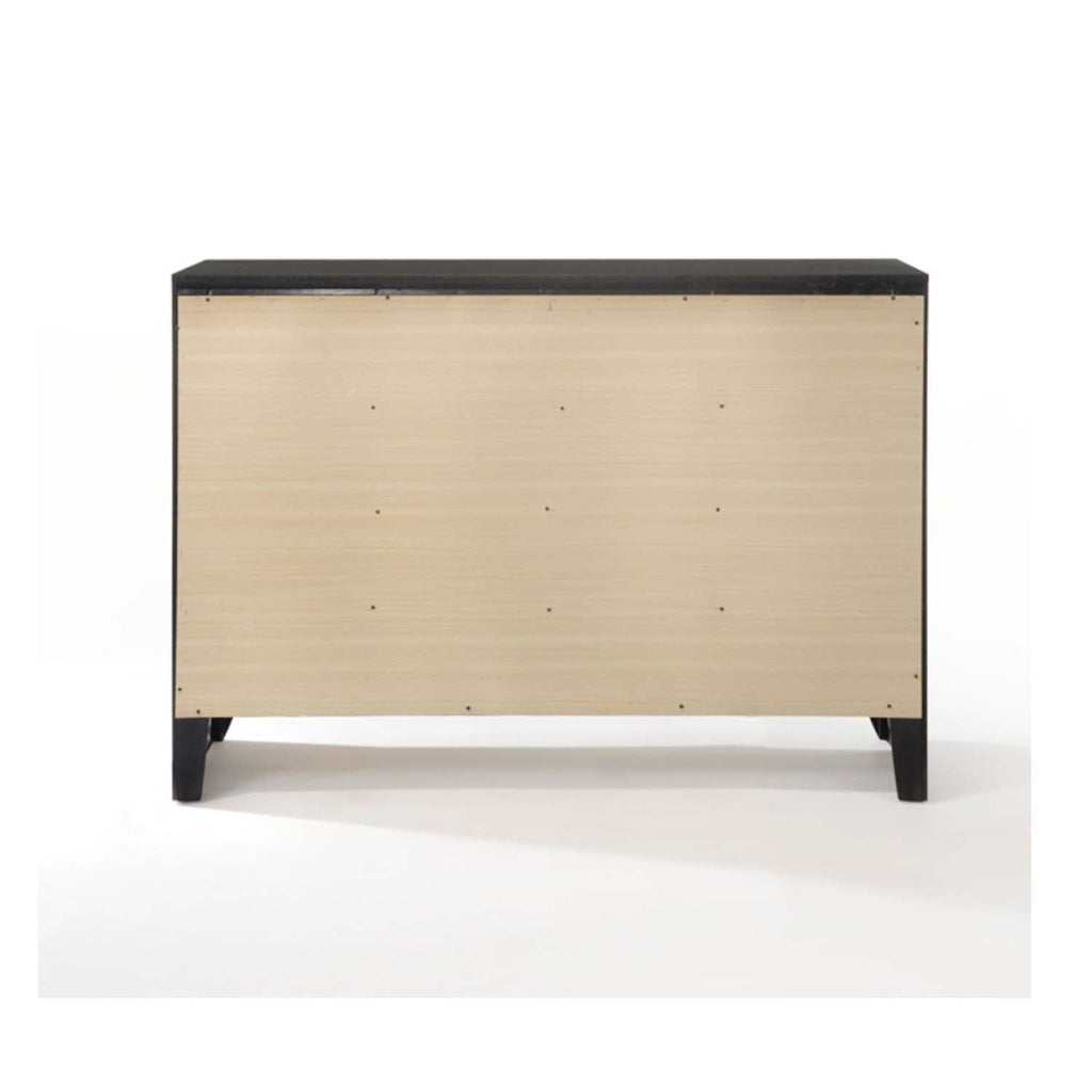 The Ireland I dresser with 8 spacious drawers is sure to provide style and functionality for any bedroom needs. All drawers have English dovetail with center metal glides. The dresser is complemented by slightly flared square legs and a modern black finish with shaped drawer fronts.