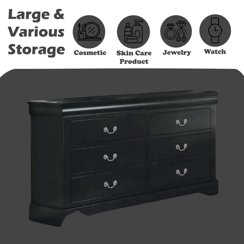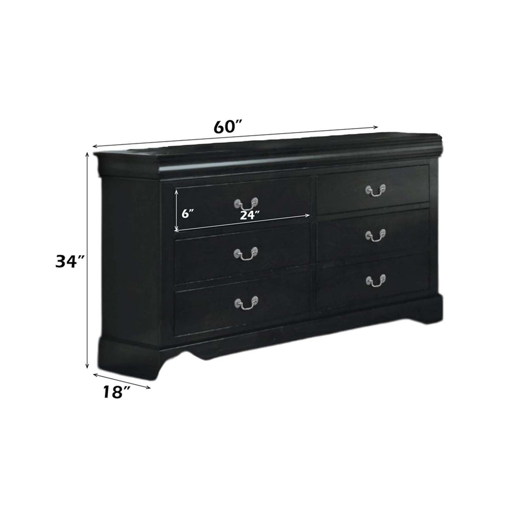 Louis Philippe III 6 Drawers Dresser, Black Finish