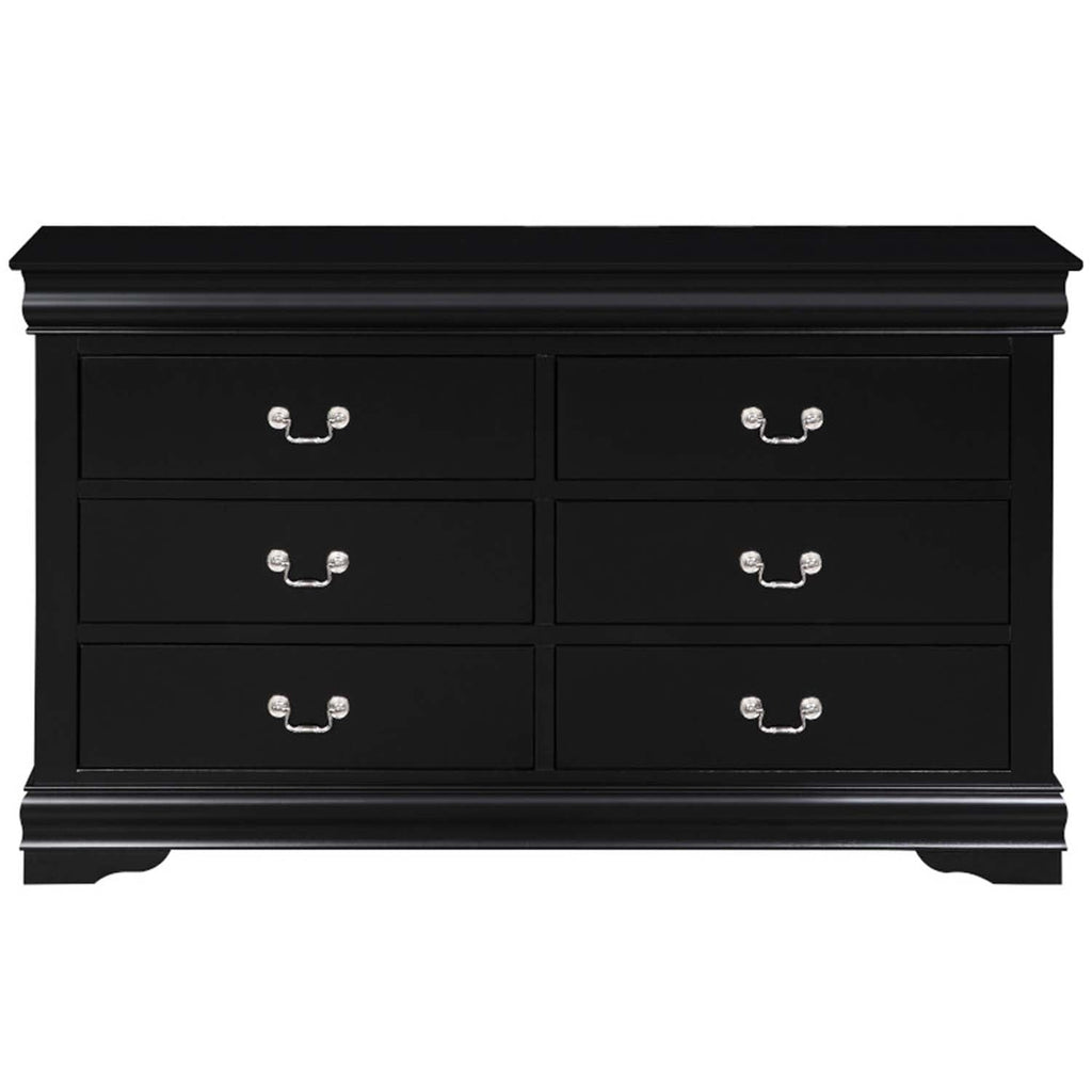 The Louis Philippe Dresser in black finish is constructed of solid wood in finish options for customization. It features six drawers with metal drop handle pulls, perfect for storing clothing and bedding. Add the optional mirror to create a complete set