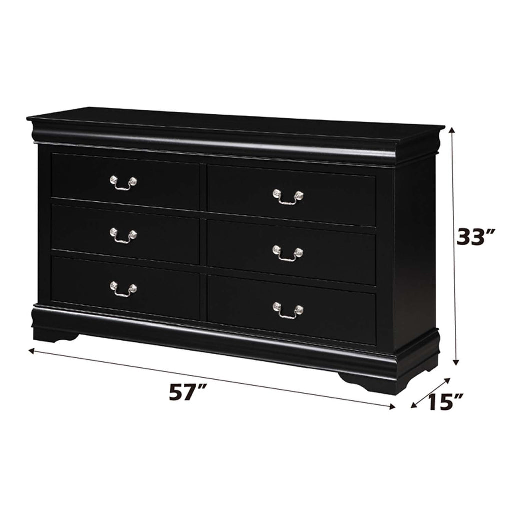 Louis Philippe 6 Drawers Dresser, Black Finish