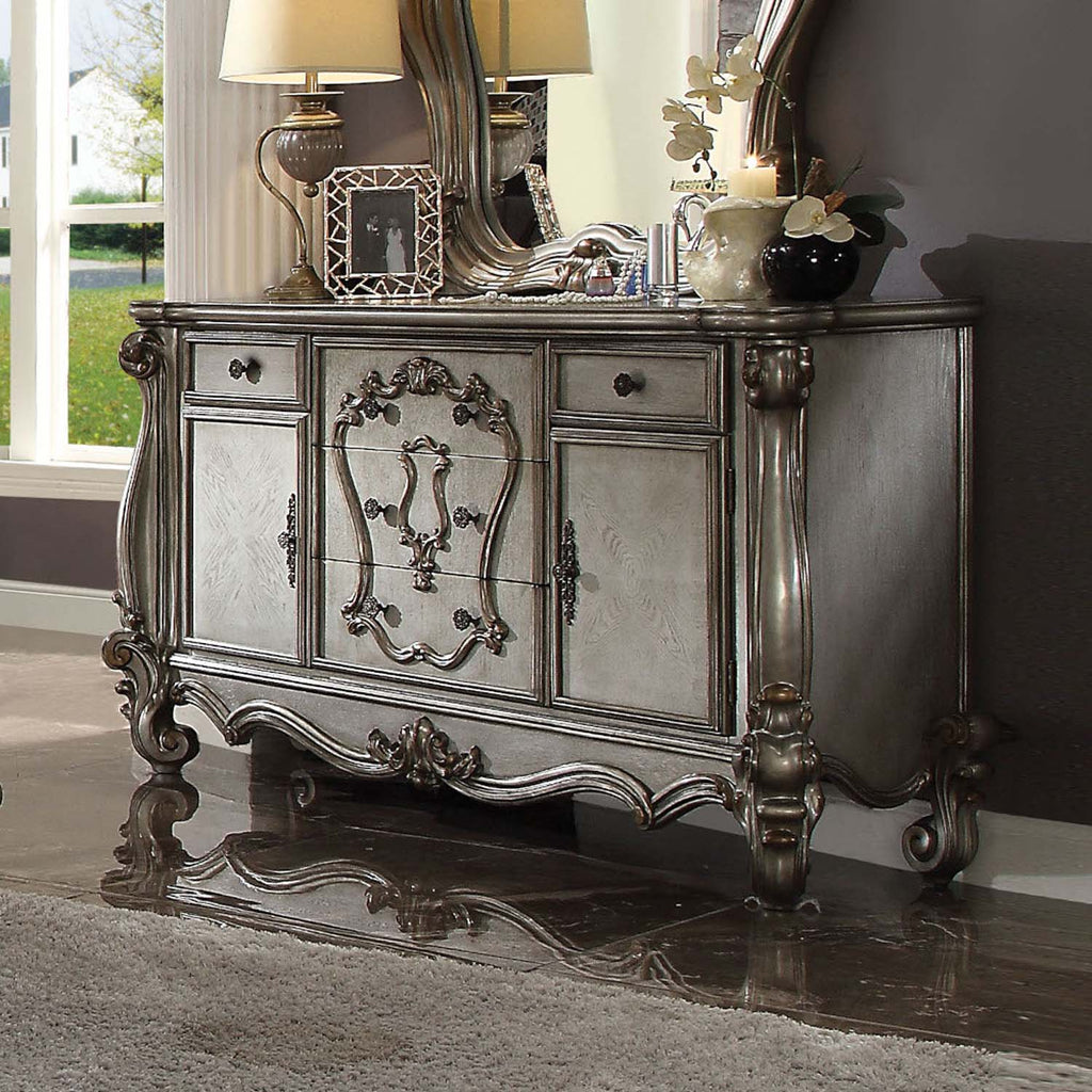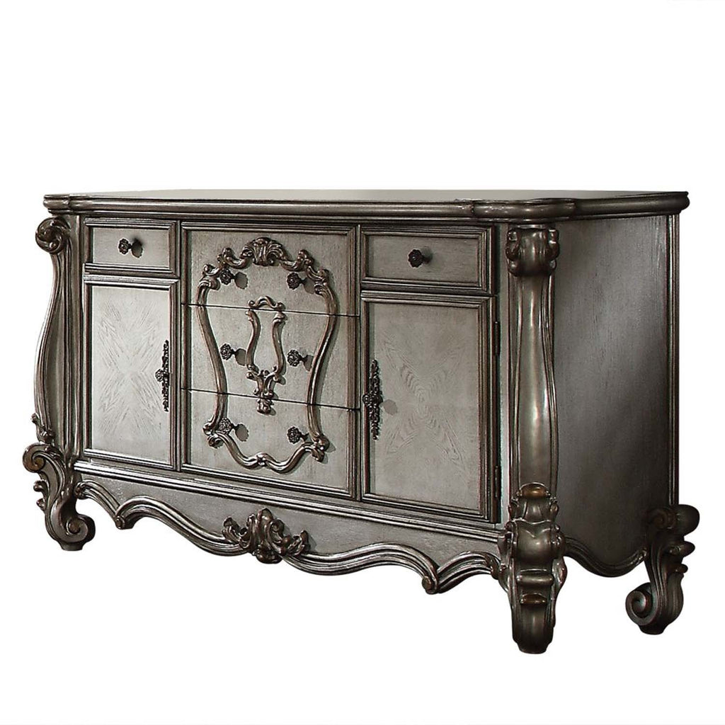 - Oversized Scrolled Leg, Base (Front Drawer Raised Scrolled Trim): Poly Resin with Antique Contrast Finish