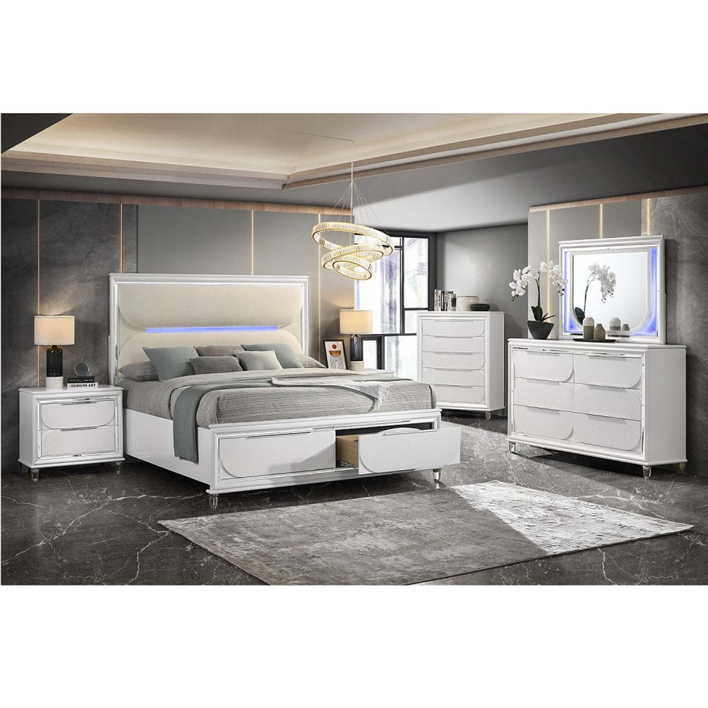 The Tarian dresser will add stylish glamour with a refined touch of glitz to your bedroom! Sturdily crafted for long-term use, this bed is finished in a fresh and alluring pearl white. This piece offers six deep storage drawers to help keep your space organized and tidy. Mirrored-finished trim and elongated drawer pulls on the drawer fronts add captivating pizzazz. It stands on sturdy clear acrylic legs that make the bed appear as if it is floating. Mirror sold separately.