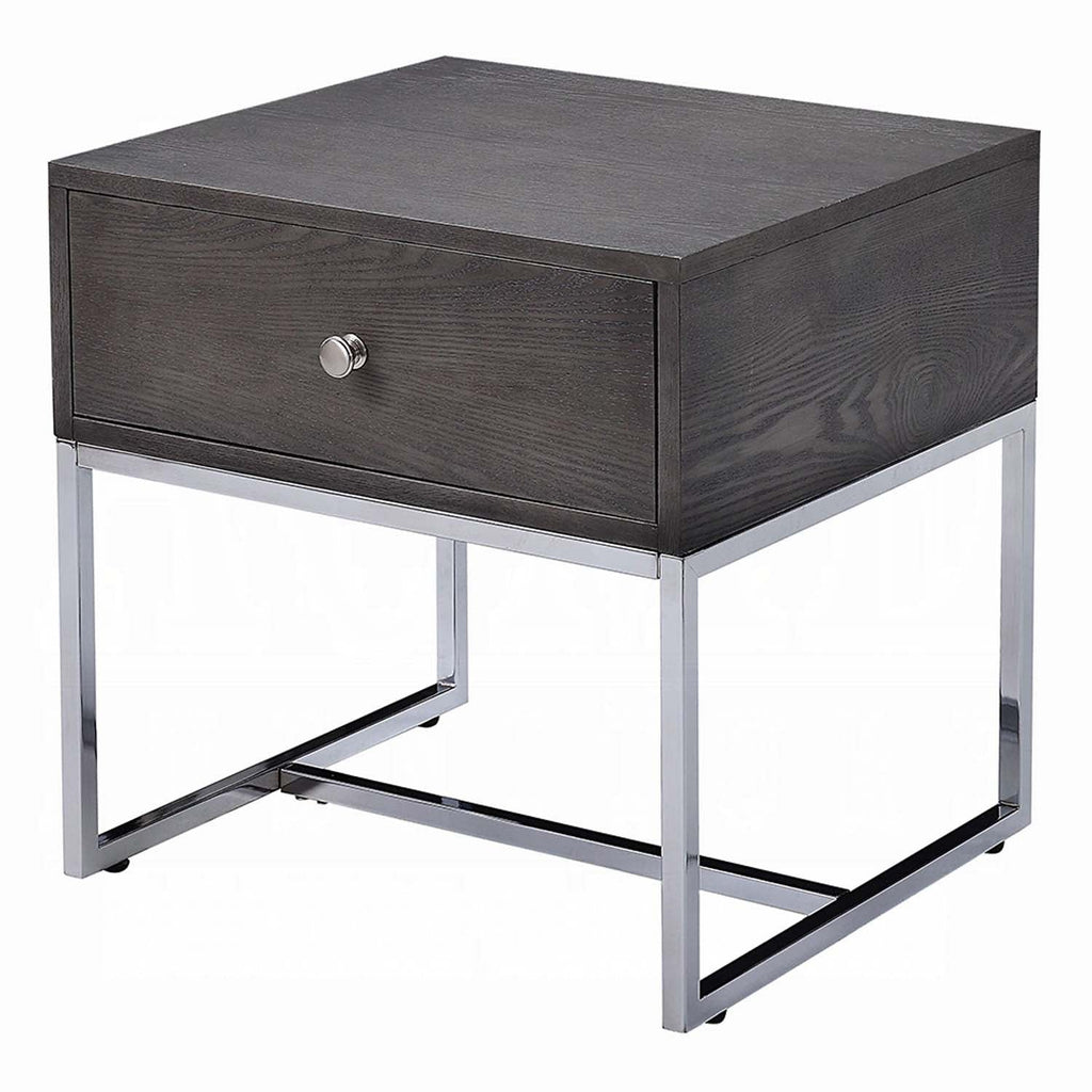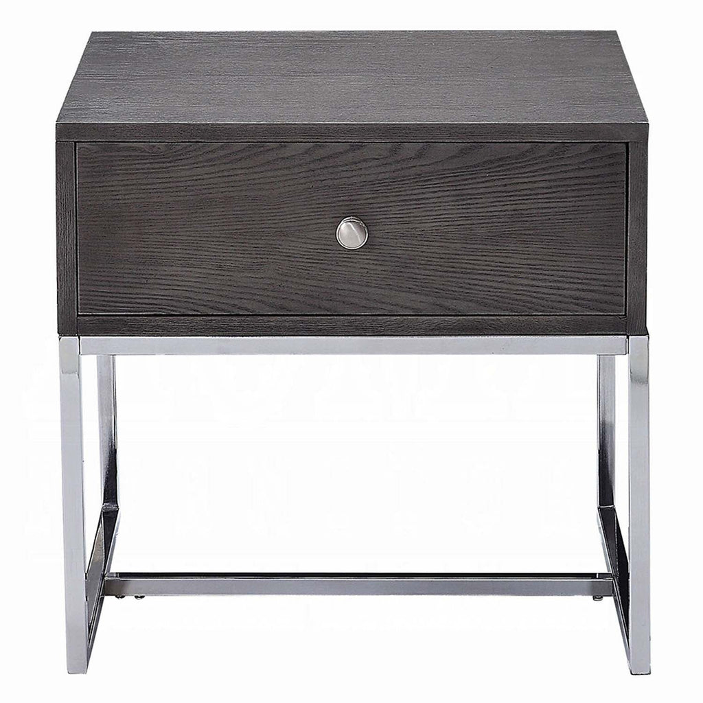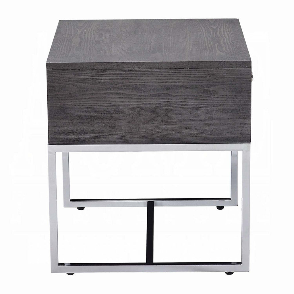 Maximize your living space with the attractive Iban End Table. Designed for with both function and style, this rectangular end table features a rich gray oak finish and a sturdy, metal sled base. The minimalist style and neutral color scheme create a contemporary look that will mesh with any existing Decor. Make the most of your space with this attractive coffee table that brings a modern touch to any room.