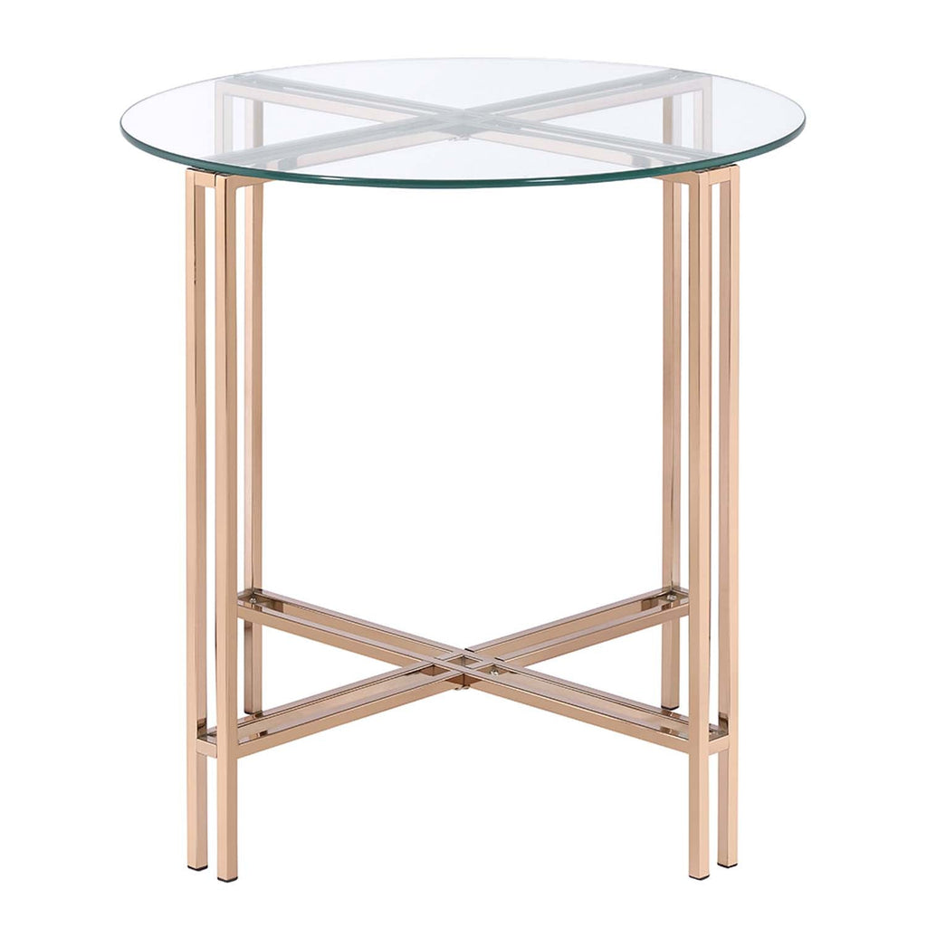You're going to love this Veises end table. It's got gold legs and a clear glass tabletop, so it's chic and classy without being too over-the-top. And it's round, so it'll fit right in with the rest of your decor! This is a great piece for your living room or bedroom.