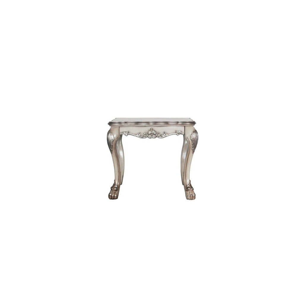 The Dresden traditional end table, reflects highly decorative details, oversized claw feet, decorative carving inlay veneers on apron, all carefully made with selected materials. This table will be the showpiece of any room environment.