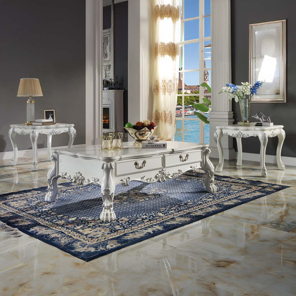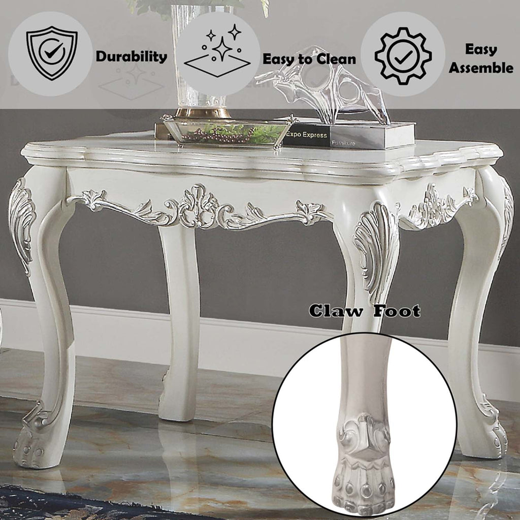This rich Dresden end table with a bone-white finish is a stunning and elegant addition to any home. This end table features intricate scrollwork throughout, adding a touch of opulence and sophistication to the piece. Boasting an elaborate design, featuring a bone-white finish that creates a classic and timeless look. The spacious tabletop allows you to display a lamp and frames. Overall, this lavish is a statement maker that will add a touch of luxury and elegance to any home.