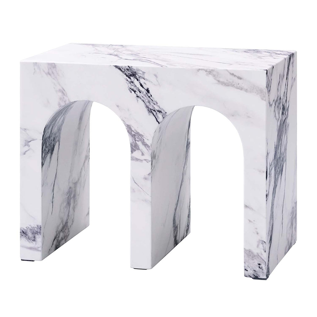 Introducing the Fritzy collection, a masterpiece of modern elegance in a striking white finish. These pieces, characterized by clean lines and a chic aesthetic, elevate any living space with their sophisticated presence. The coffee table and the uniquely designed arching end table offer a seamless blend of style and functionality. Crafted to impress, the Fritzy tables are the perfect choice for a contemporary home aiming to make a statement.