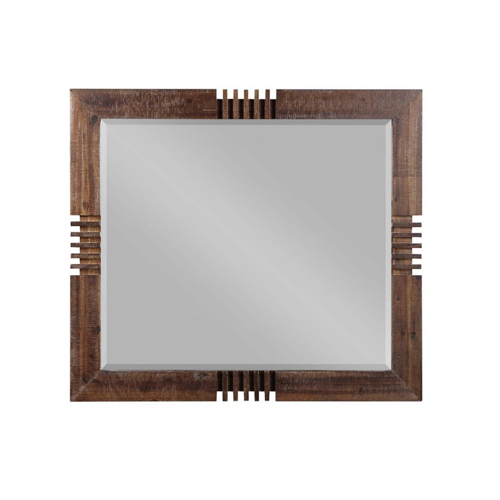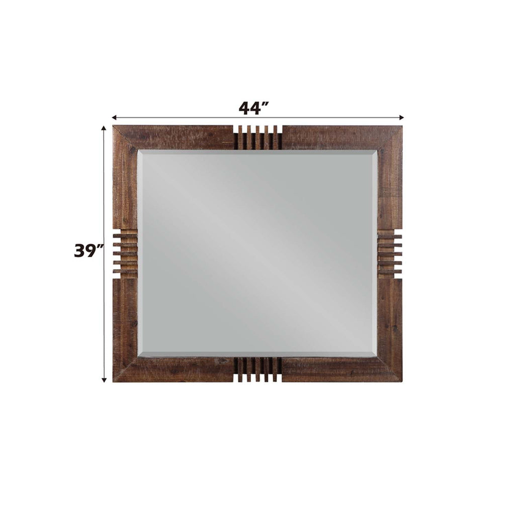 The Andria Beveled mirror has a sturdy wooden frame with a reclaimed oak finish. The Mirror gives you a place to check out your reflection, but the beveled surface and add an elegant touch to a space.
