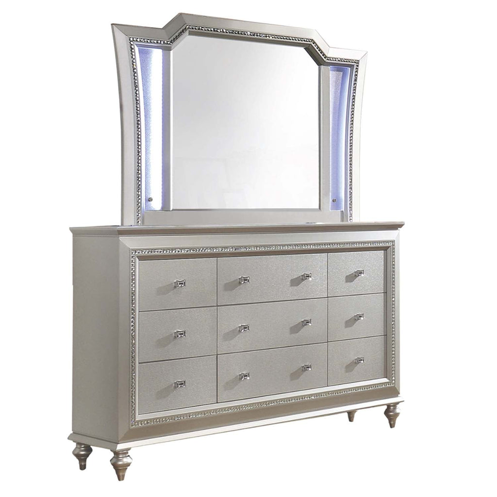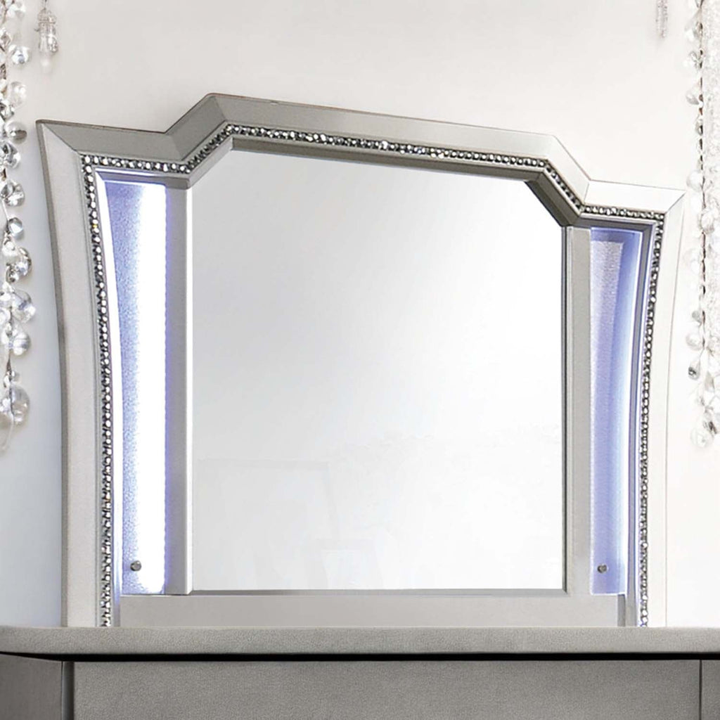 The Kaitlyn mirror provides a commanding presence in any room. Crafted with a transitional look that is an ideal addition to any bedroom, the mirror is accented with LED light and a crystal-like sparkling trim. Its crystal-like trimming creates dazzling glow for your master bedroom.