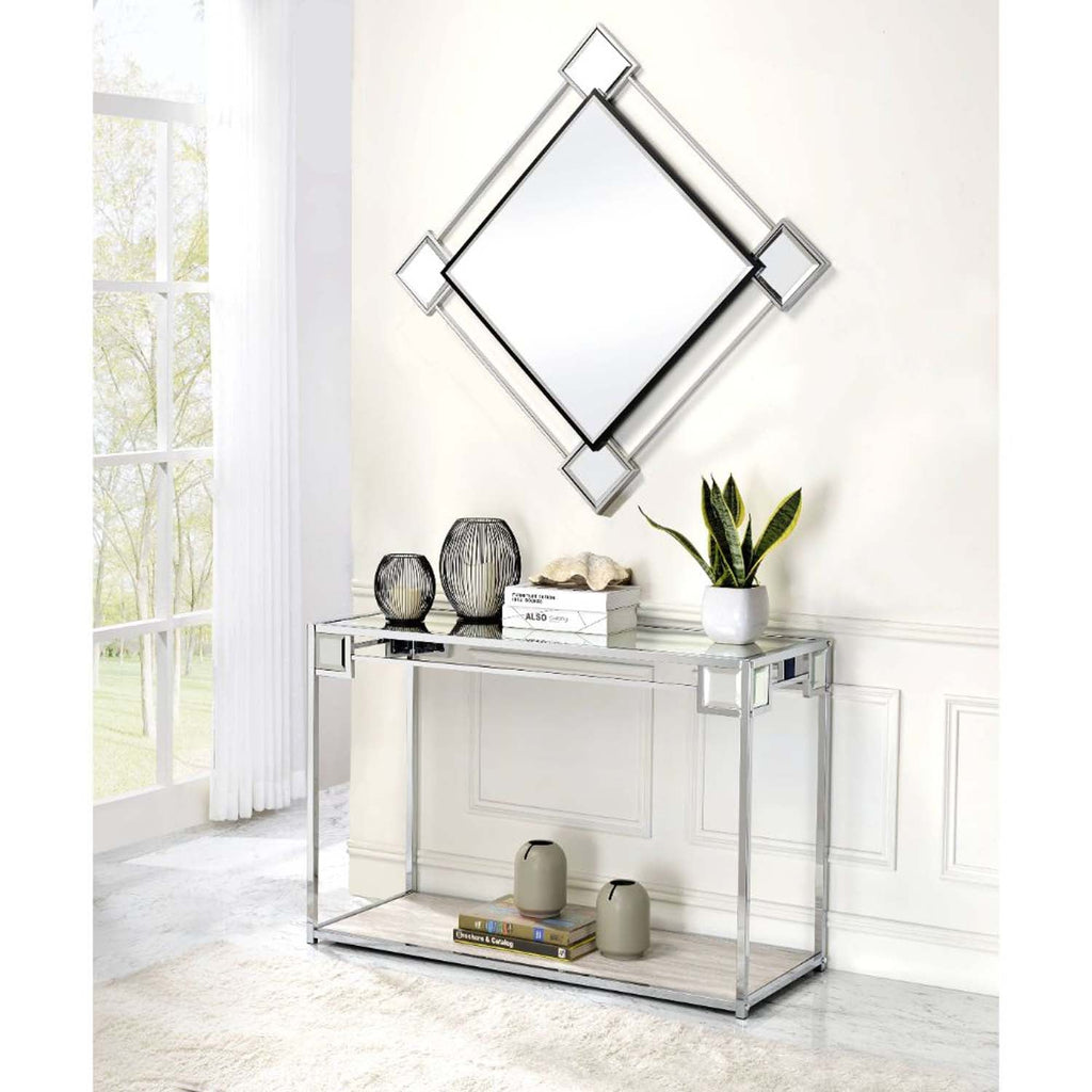 - Metal Tube Frame/Clear Glass Trim w/Cornered Mirrored Edge Accents, Chrome Finish