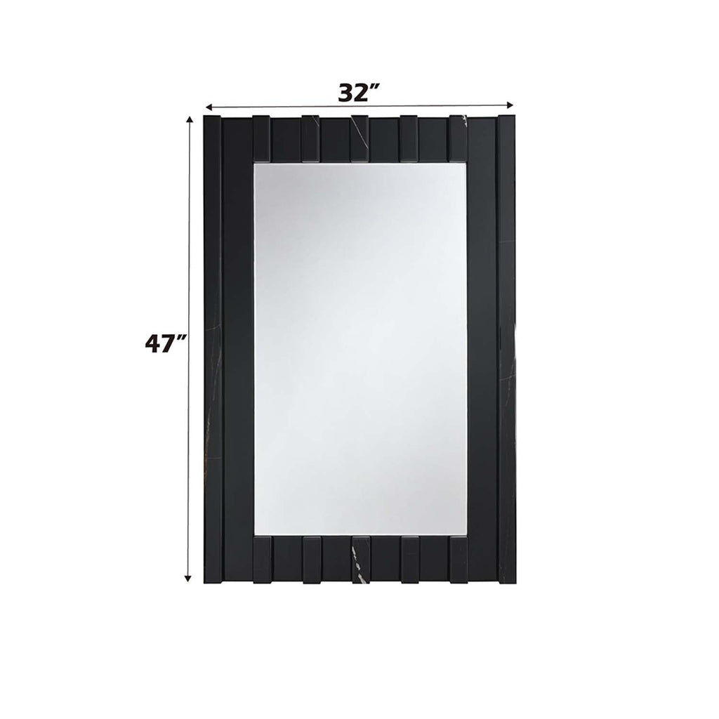 Drisana collection console table and accent mirror exudes modern elegance with its sleek black mirrored finish and marble grain design. This sophisticated pair adds a touch of luxury to any entryway or living space, providing both style and functionality. The console table offers a chic surface for decorative items, while the matching mirror enhances the room with its reflective beauty. Elevate your home decor with the contemporary charm of the Drisana collection.