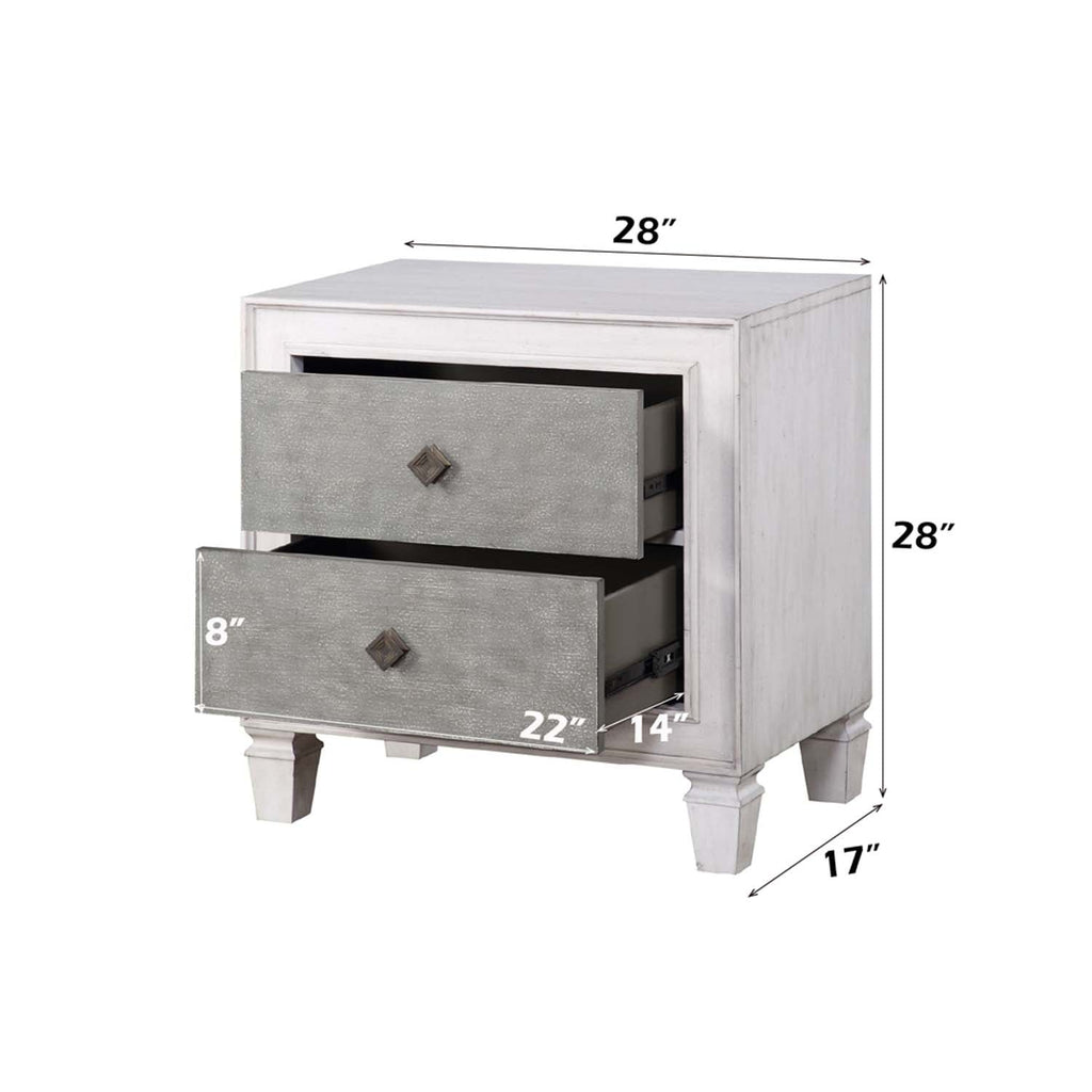 Katia Nightstand, Rustic Gray & Weathered White Finish