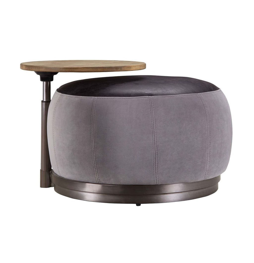 The Decapree Ottoman may steal the spotlight in your living room. Upholstered in antique slate top grain leather and gray velvet, the stunning contrast between color and texture beckons you to explore all the features that makes this ottoman unique. In addition, full foam seat construction as well as a side table attached to the ottoman takes the Decapree from unusual to unparalleled.