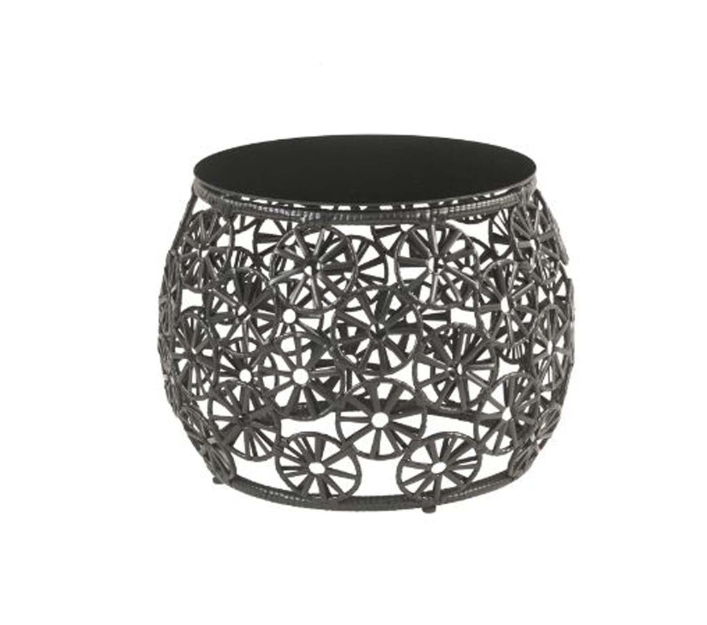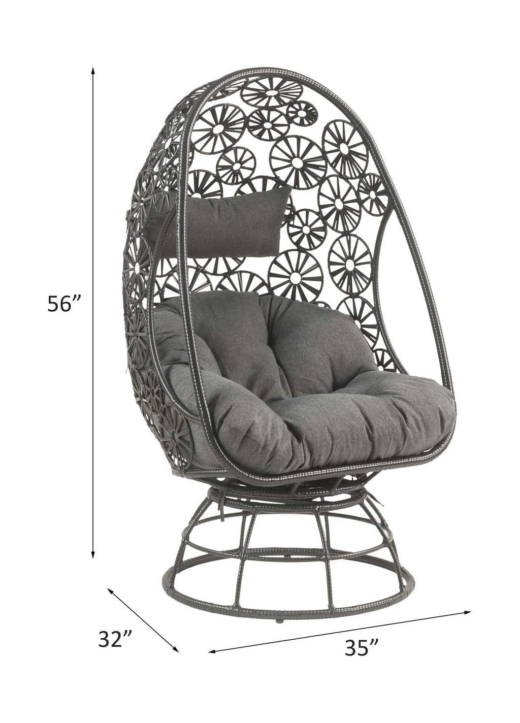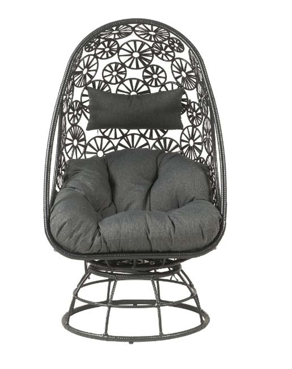 Elegant, airy wicker-weaving work offers a lovely retreat to relax your body and soothe your mind. Black wicker frame with metal base highlights the fabulously airy and sturdy construction. Teardrop-shaped design combines beautiful floral accents to create a sophisticated look. The additional seat cushion will make you feel so comfortable and relaxed lounging in this chair. Complementing side table makes a great place to rest your drink or book with its glass tabletop and stable drum base. Discover a dreamy oasis to stay with Hikre Patio Lounge Chair & Side Table.