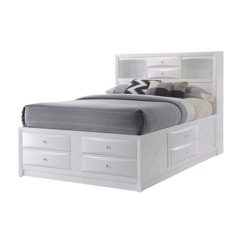 - Features: Wooden Frame Bed, Bookcase Headboard, Storage Footboard & Rails: 8 Drawers: Headboard w/2Drawer, Side Rail w/1Drawer each side, Footboard w/4 Drawer