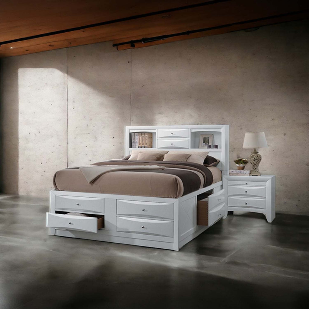 - Features: Wooden Frame Bed, Bookcase Headboard, Storage Footboard & Rails: 8 Drawers: Headboard w/2Drawer, Side Rail w/1Drawer each side, Footboard w/4 Drawer