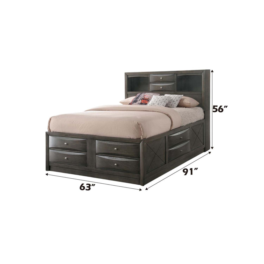 - Features: Wooden Frame Bed, Bookcase Headboard, Storage Footboard & Rails: 8 Drawers: Headboard w/2Drawer, Side Rail w/1Drawer each side, Footboard w/4 Drawer