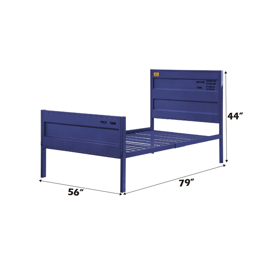 The Cargo youth bed is the perfect addition to any child's room. This contemporary container themed metal bed features a panel headboard with low profile footboard, crafted with an industrial look that is an perfect match for your bedroom. The bed is accented with straight legs and a recessed panel design in an understated finish. This fashionable bed will accent your other bedroom furniture, transforming a room from ordinary into something playful and unique.