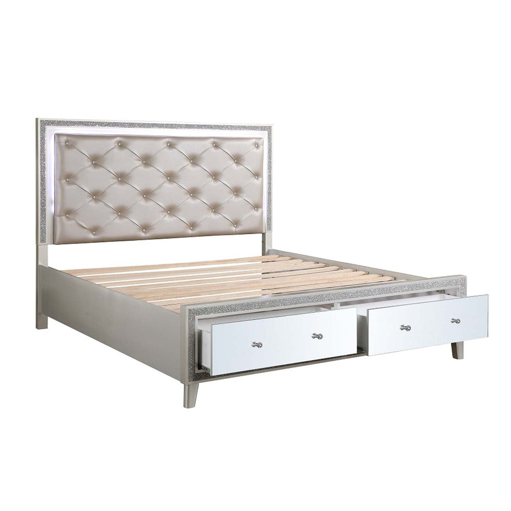 Sliverfluff King Bed w/Led & Storage, Faux Leather & Champagne Finish