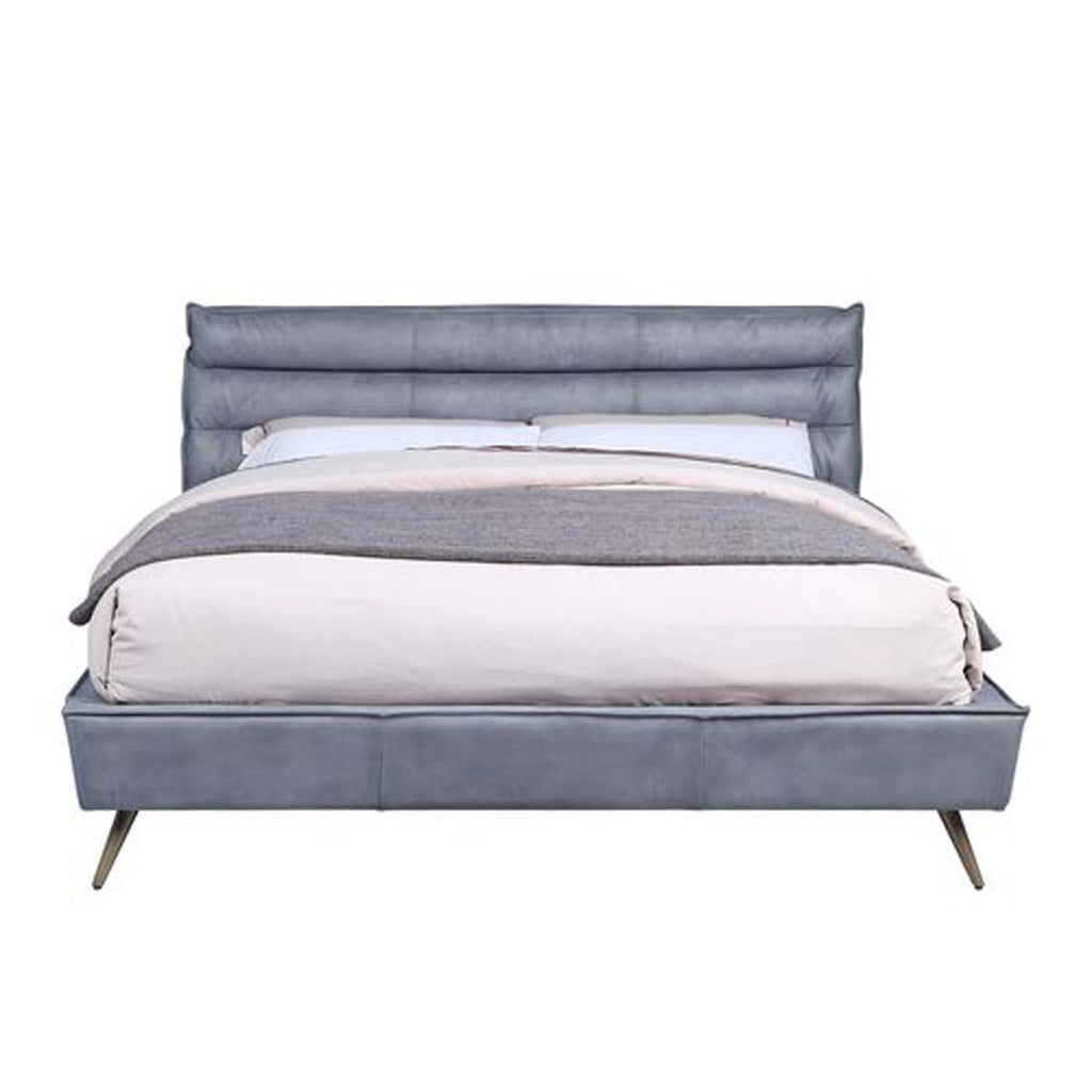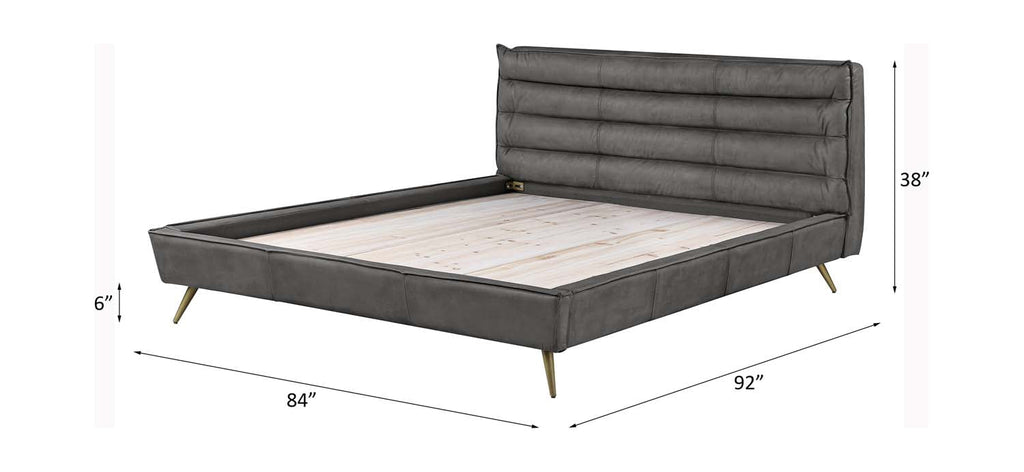 Masculine yet soft, the Doris bedroom collection is edgy and inviting all in one. The leather upholstered bed can fit with an industrial, vintage, or modern bedroom easily. The headboard features horizontal channel tufting to adds some support while leaning against it while reading or watching TV. The neutral finish is cozy and inviting and makes it easy to style around. Sitting on sturdy metal legs for maximum stability.