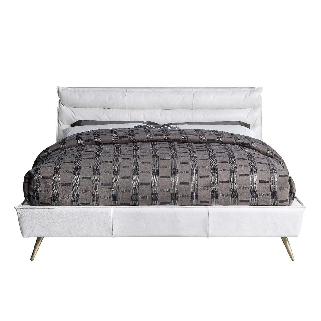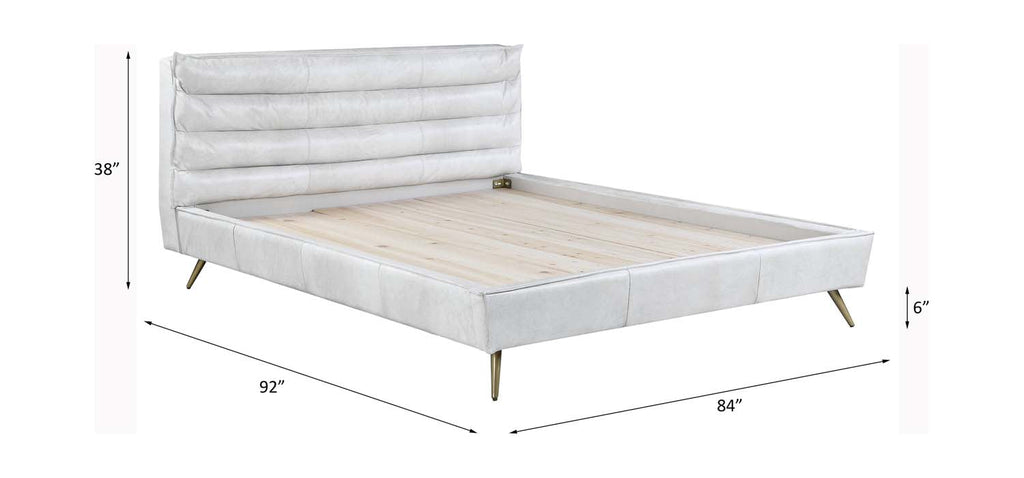 Masculine yet soft, the Doris bedroom collection is edgy and inviting all in one. The leather upholstered bed can fit with an industrial, vintage, or modern bedroom easily. The headboard features horizontal channel tufting to adds some support while leaning against it while reading or watching TV. The neutral finish is cozy and inviting and makes it easy to style around. Sitting on sturdy metal legs for maximum stability.