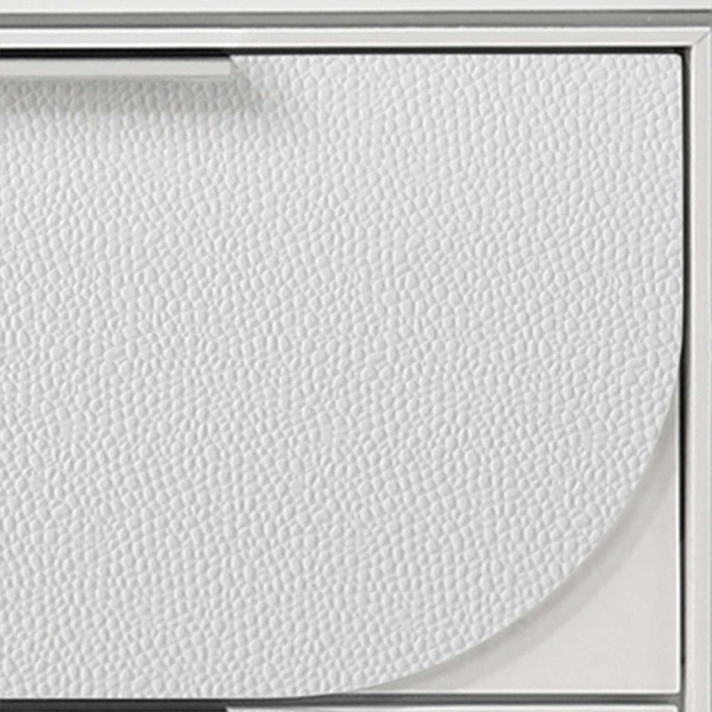 The Tarian bed will add stylish glamour with a refined touch of glitz to your bedroom! Sturdily crafted for long-term use, this bed is finished in a fresh and alluring peal white. The headboard features hidden LED lighting and comfortable boucle padding. The footboard offers two deep storage drawers to help keep your space organized and tidy. Mirrored-finished trim and elongated drawer pulls on the drawer fronts add captivating pizzazz. It stands on sturdy clear acrylic legs that make the bed appear as if it is floating.